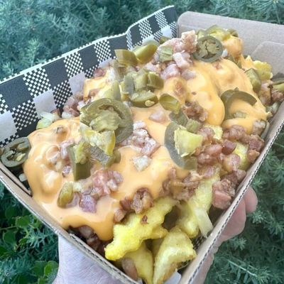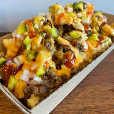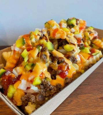 Imagine A Cheeseburger But On Top Of Fries. (Beef - Ketchup - Cheese - Pickles - Onion - Nacho - Mustard)