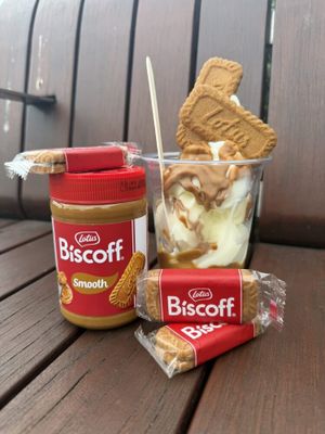Vanilla Soft Serve - Crunchy Biscoff pieces - Warm Biscoff Topping