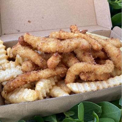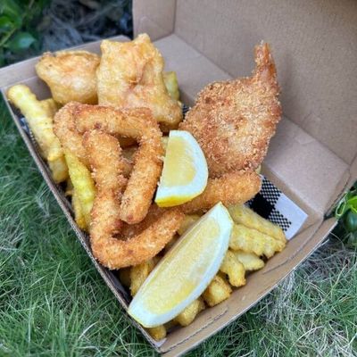 2 Fish Bites - 1/2 Serve Calamari - Crumbed Prawn - Cup Of Chips