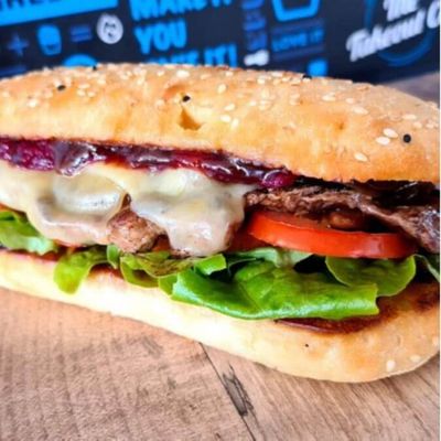 Chargrilled Rib Eye - Onion Jam - Cheddar Cheese - Tomato - Beetroot Relish - Lettuce - BBQ Sauce - Turkish Bread