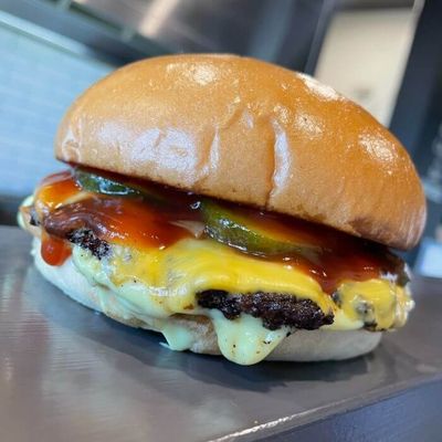 Hand Pressed Angus Beef - Cheese - Tomato Relish - Mustard - Pickles