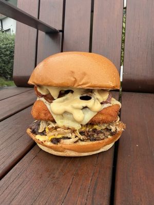 Beef Patty - Burger Cheese - Pulled Pork - Crumbed Chicken Tenders - Tasty Cheese - Bacon - BBQ Mayo