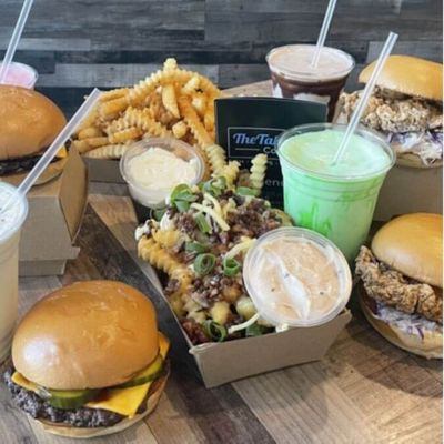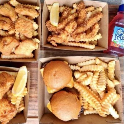 2 x All American Cheeseburgers - 2 x Southern Fried Chicken Burgers - Medium Fries - Small Loaded Fries - 4 Small Milkshakes