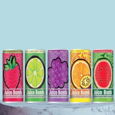 Fruit Juice In A Can. Available in 4 Flavours (Apple Cola, Grape, Apple Raspberry & Orange Passion)
