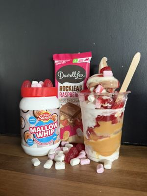 Choc Coconut and Vanilla Soft Serve - Peanut Butter - Mallow Whip - Raspberry Sauce and Lollies - Mallows